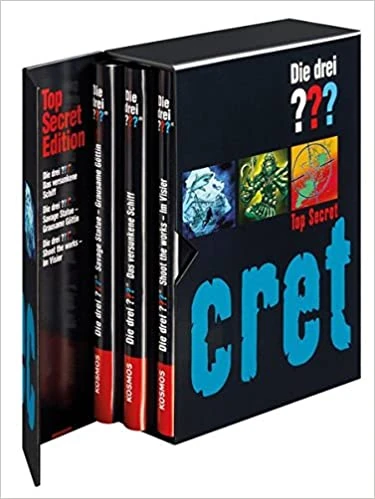 - ↑ https://www.amazon.de/Die-drei-Top-Secret-2/dp/3440141225/ref=sr_1_1?__mk_de_DE=%C3%85M%C3%85%C5%BD%C3%95%C3%91&dchild=1&keywords=Drei+%3F%3F%3F+Top+secret+2&qid=1590215893&sr=8-1